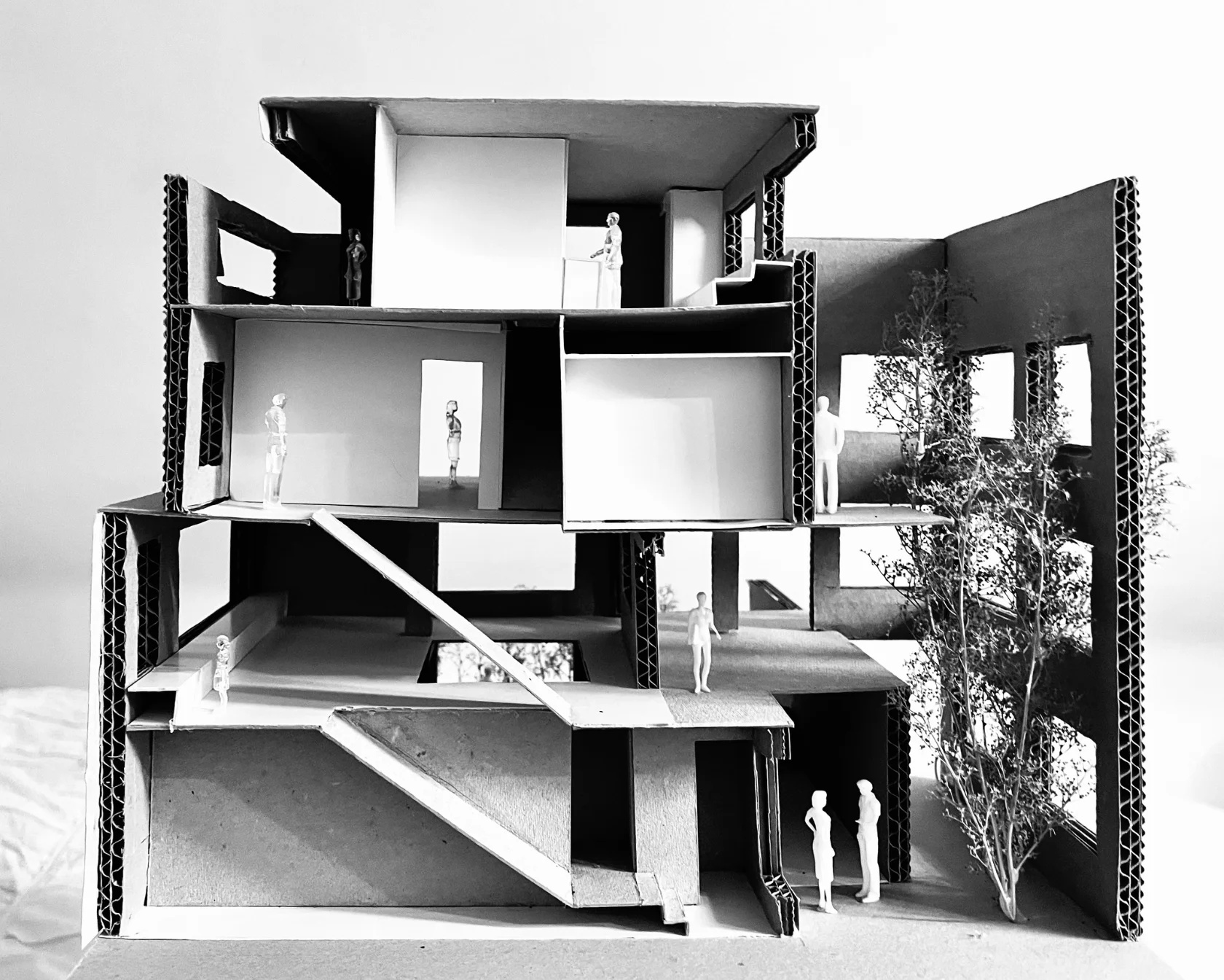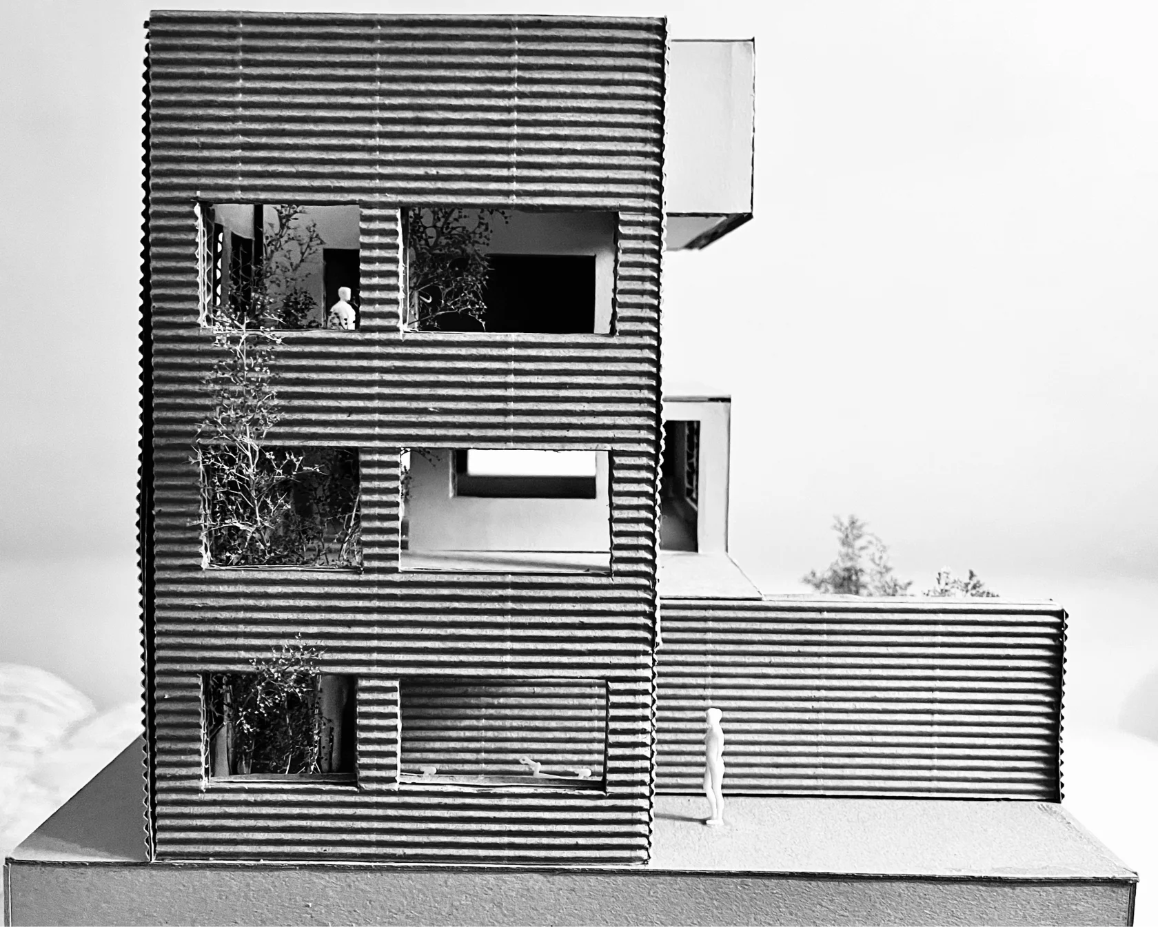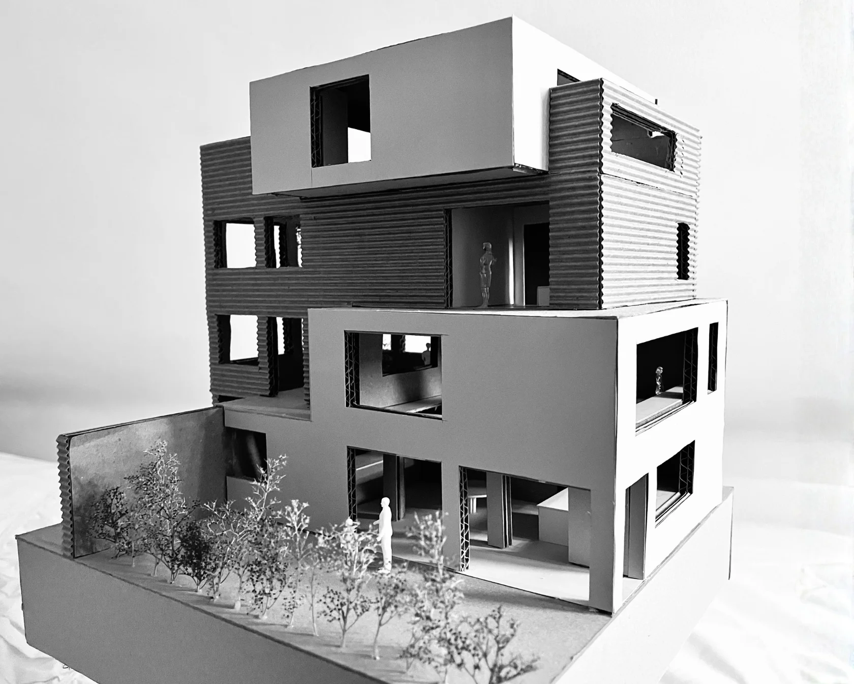 Implantée sur un site fictif soumis à des prescriptions urbanistiques précises, la maison unifamiliale dite “Maison Brûlée” questionne la manière d’habiter en conciliant contraintes et intentions architecturales.