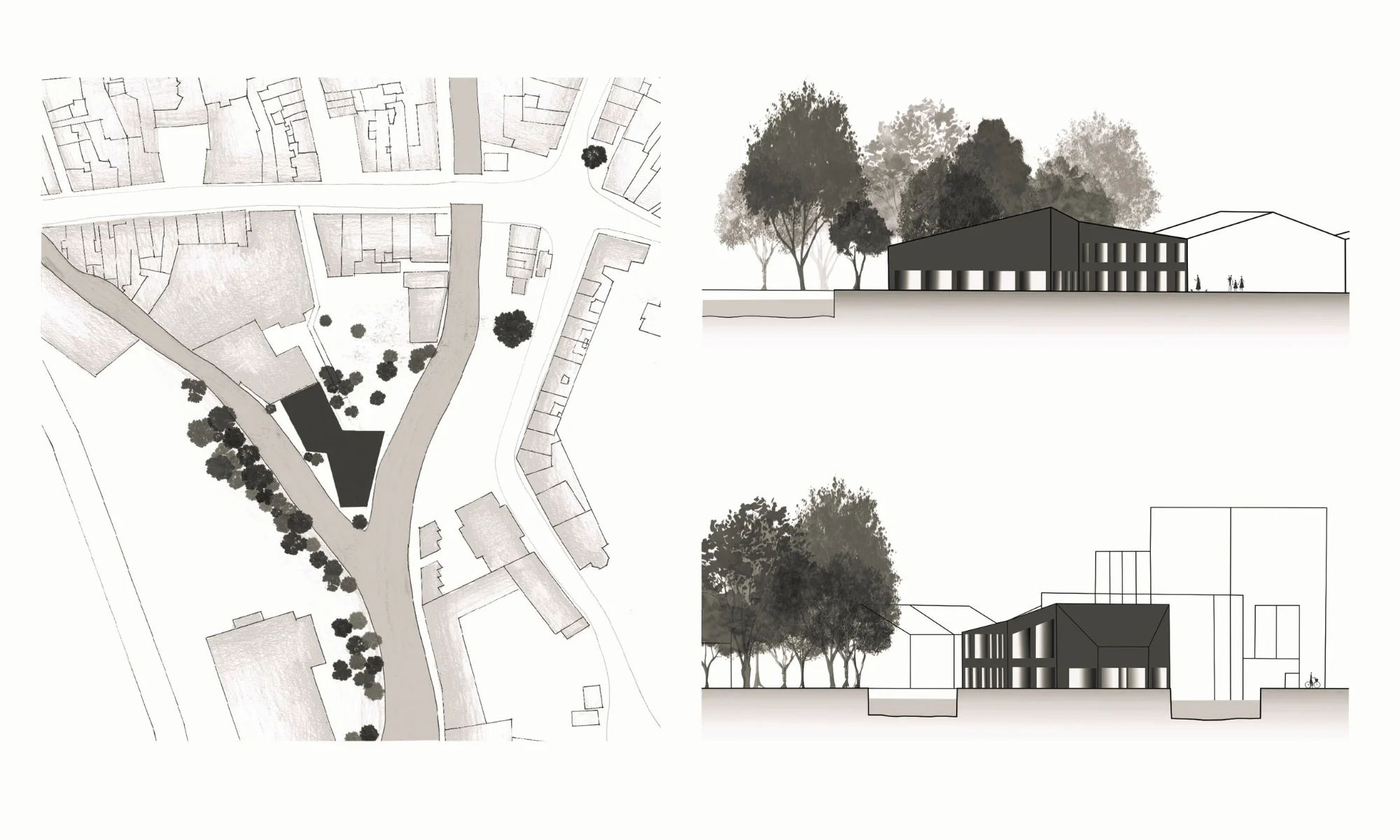 Dans une petite ville aux moyens limités, cette approche durable et contextuelle rend possible une architecture sobre et adaptée, capable de revitaliser le quartier grâce à la fonction culturelle du café-théâtre.