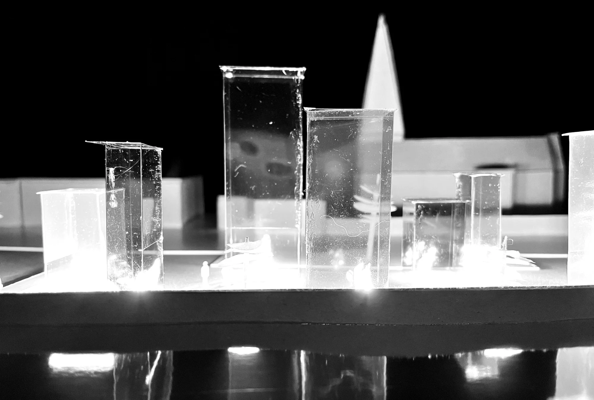 L'intervention intègre le mouvement des passants et s'insère dans la continuité du cheminement le long de la rive. Elle privilégie la clarté, la simplicité et la connexion avec le paysage fluvial. L'objectif est de créer une signalétique pour les utilisateurs du fleuve et de la ville, avec des boîtes de tailles variées disposées à distance les unes des autres pour encourager le déplacement. Chaque boîte a une fonction distincte, incitant les usagers à explorer pleinement les lieux. Les boites sont faites de verre et sont illuminées la nuit pour renforcer l’aspect signalétique de l’embarcadère. Ainsi, les boites fonctionnent comme des lanternes la nuit, guidant les passant et mariniers.
